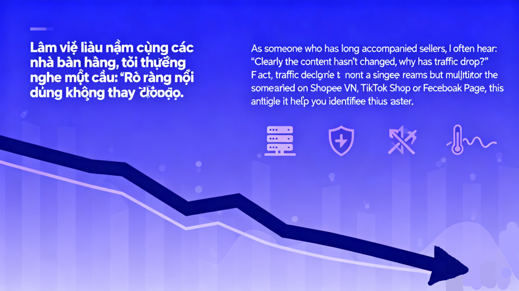 Là người đồng hành lâu dài với các nhà bán hàng, tôi thường nghe câu hỏi: “Nội dung vẫn vậy, tại sao lượt truy cập lại giảm?” Thực chất, việc traffic giảm thường không do một nguyên nhân duy nhất, mà là sự kết hợp của nhiều yếu tố. Nếu bạn cũng đang trải qua tình trạng tương tự trên Shopee VN, TikTok Shop hay Facebook Page, bài viết này sẽ giúp bạn nhanh chóng tìm ra vấn đề.