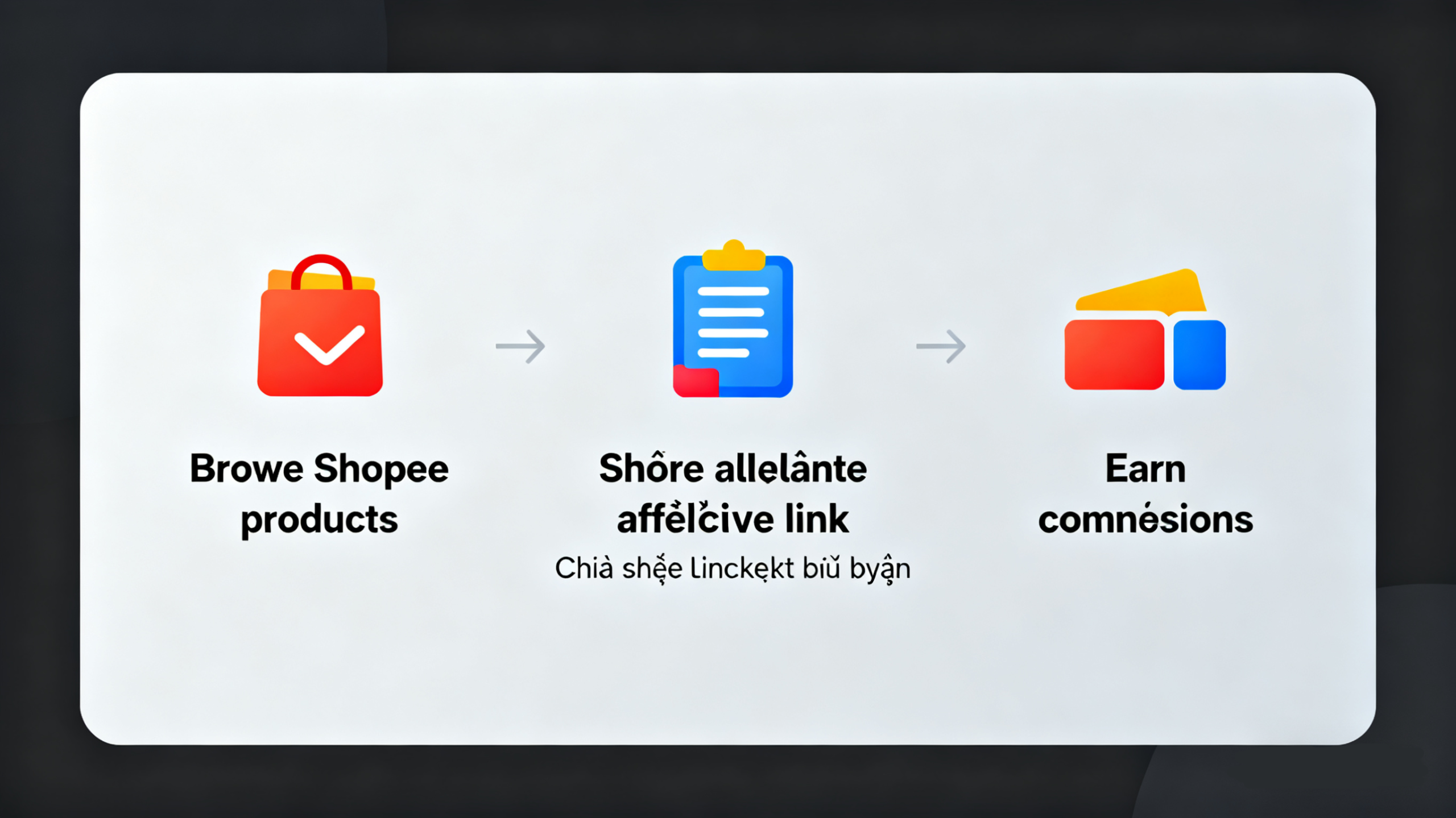 Hãy để tôi giải thích bằng một ví dụ đơn giản. Giả sử bạn thường xuyên mua sắm trên Shopee; chỉ cần chia sẻ liên kết sản phẩm, khi có người mua hàng thông qua liên kết đó, bạn sẽ nhận được hoa hồng. Bạn không cần nhập hàng hay đầu tư vốn, phương pháp này rất phù hợp cho học sinh hoặc nhân viên văn phòng.