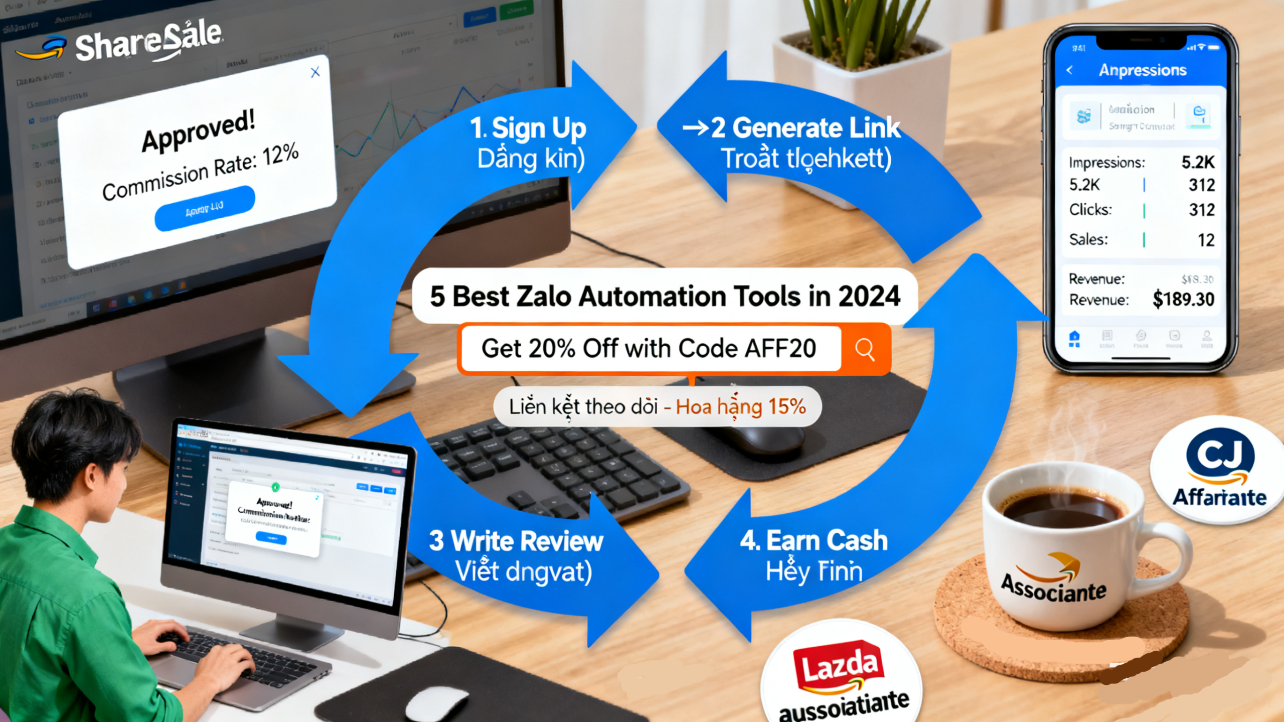 Cách thức hoạt động: Bạn tham gia chương trình liên kết, nhận liên kết giới thiệu độc nhất, và quảng bá trên website của mình. Tại sao nó phổ biến? Vì ngưỡng vào thấp, lợi nhuận cao, đặc biệt phù hợp với những người yêu thích chia sẻ cuộc sống như chúng ta.